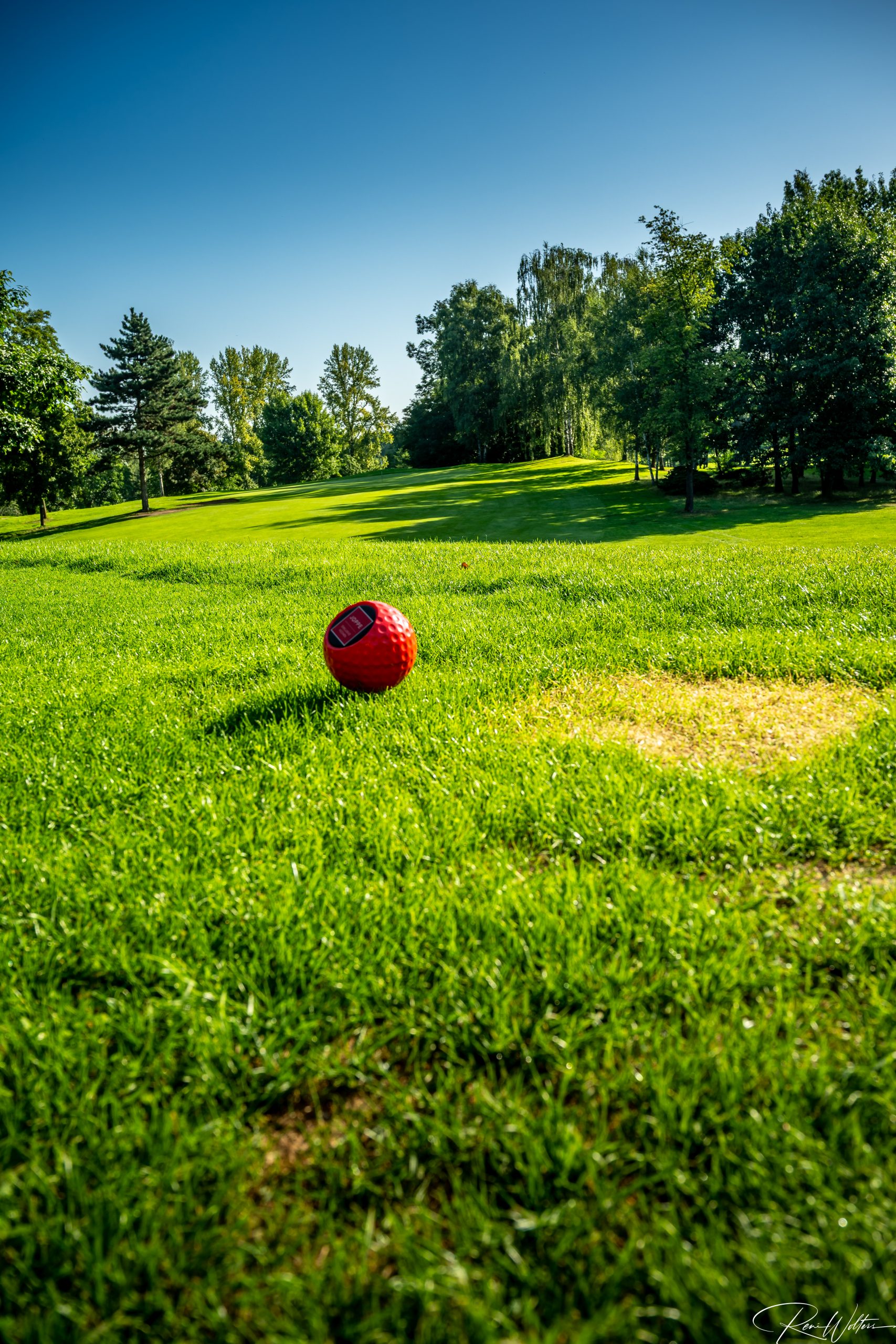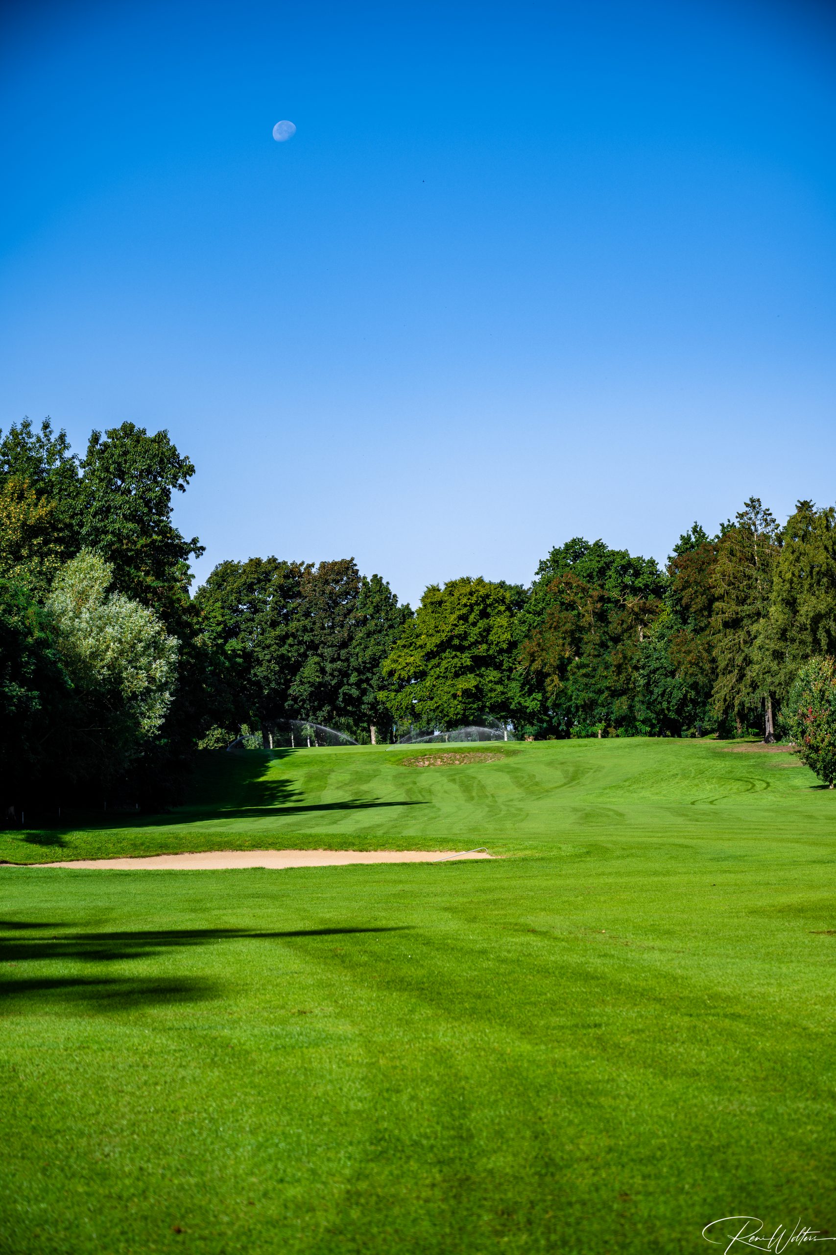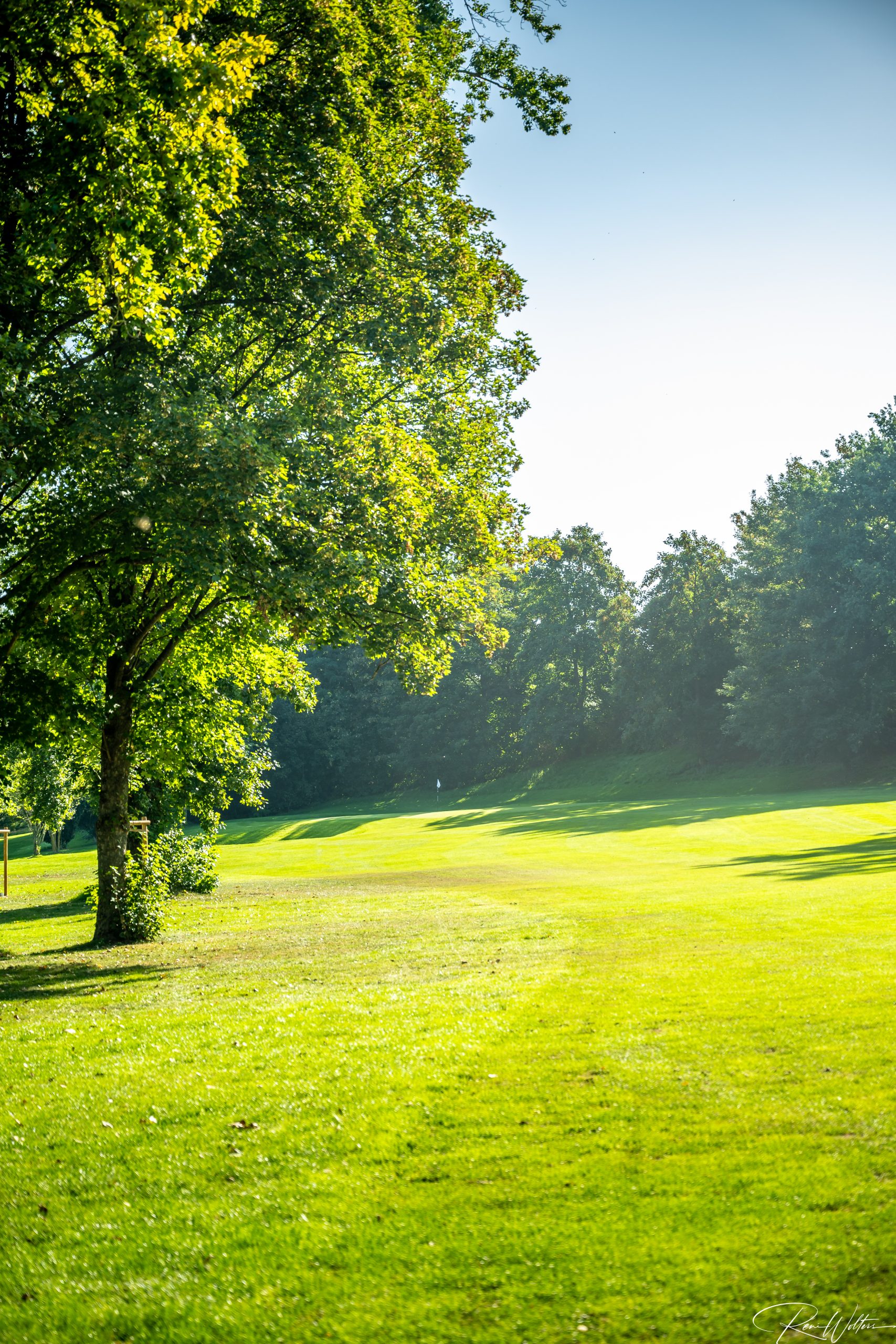 Zu dieser frühen Stunde gehört der Platz fast nur denen, die bewusst hinschauen. Neben ein paar Greenkeepern, die sehr verwundert waren uns zu sehen, waren nur noch ein paar Vögel so früh auf den Beinen. Keine Geräusche, kein Hecktik, kein Spiel. Die Fahnen standen regungslos, die Grüns wirkten wie gemalt. In diesem Licht verliert der Golfplatz seine Funktion und wird zur Bühne: Linien, Farben, Kontraste – Natur in ihrer ruhigsten Form.