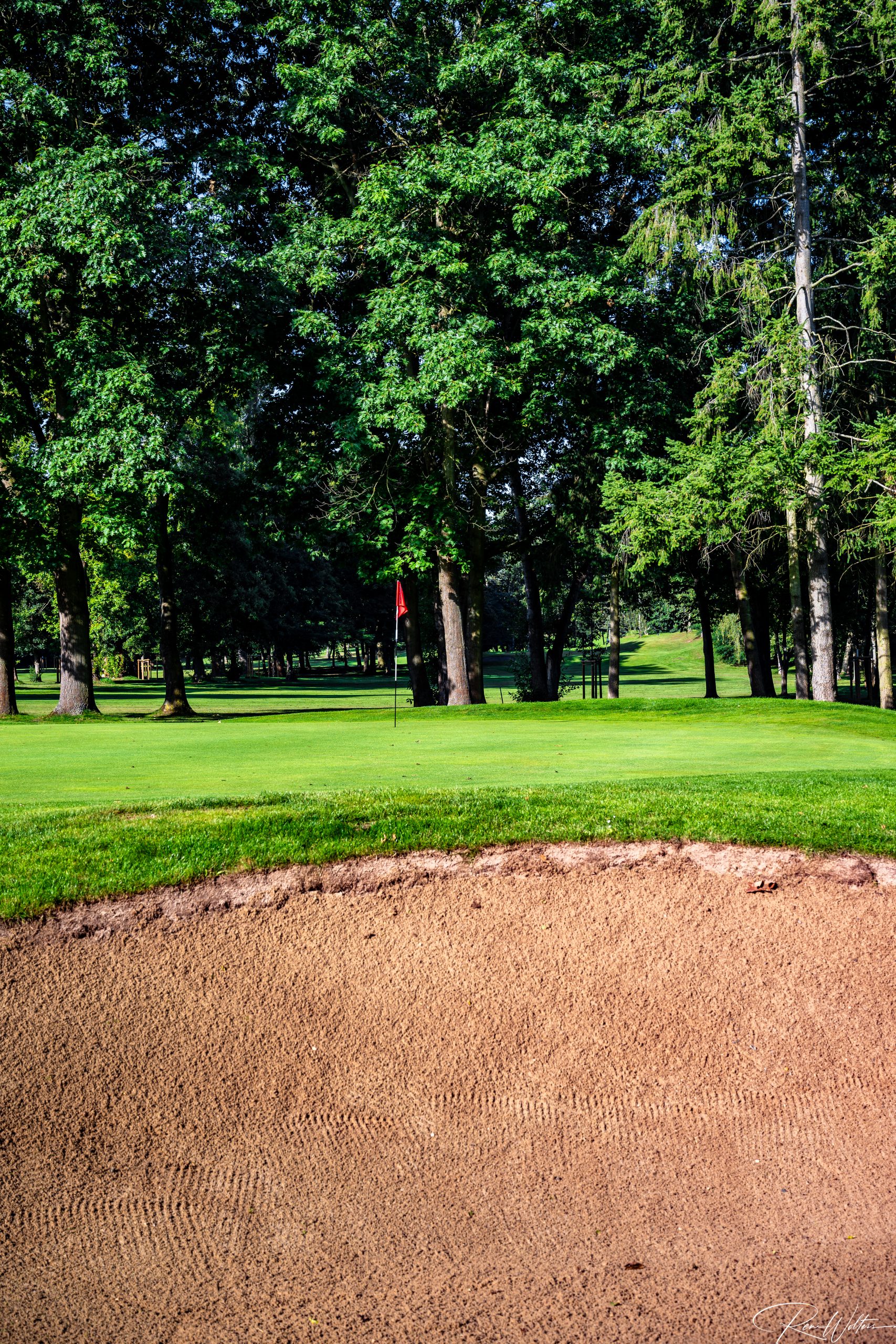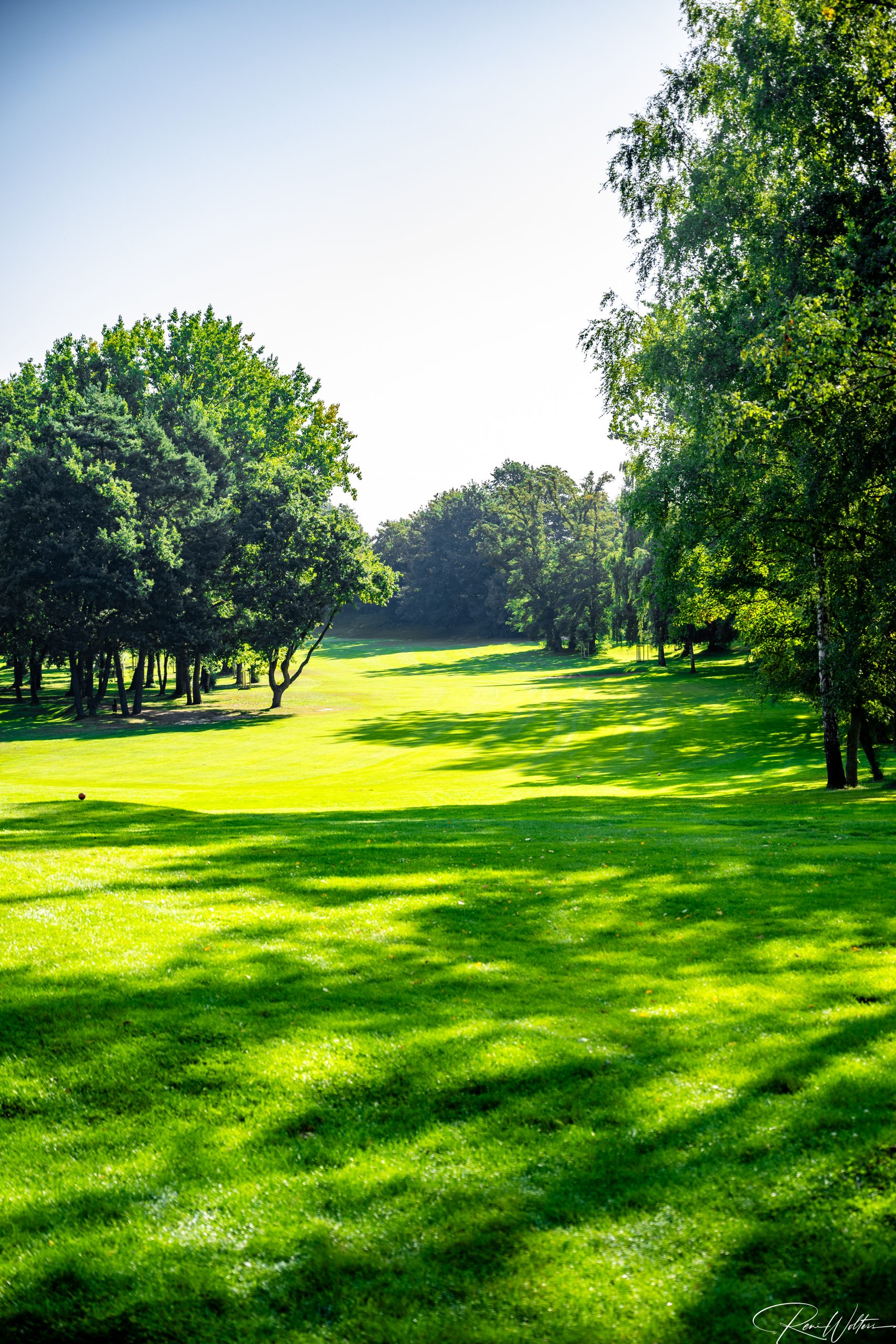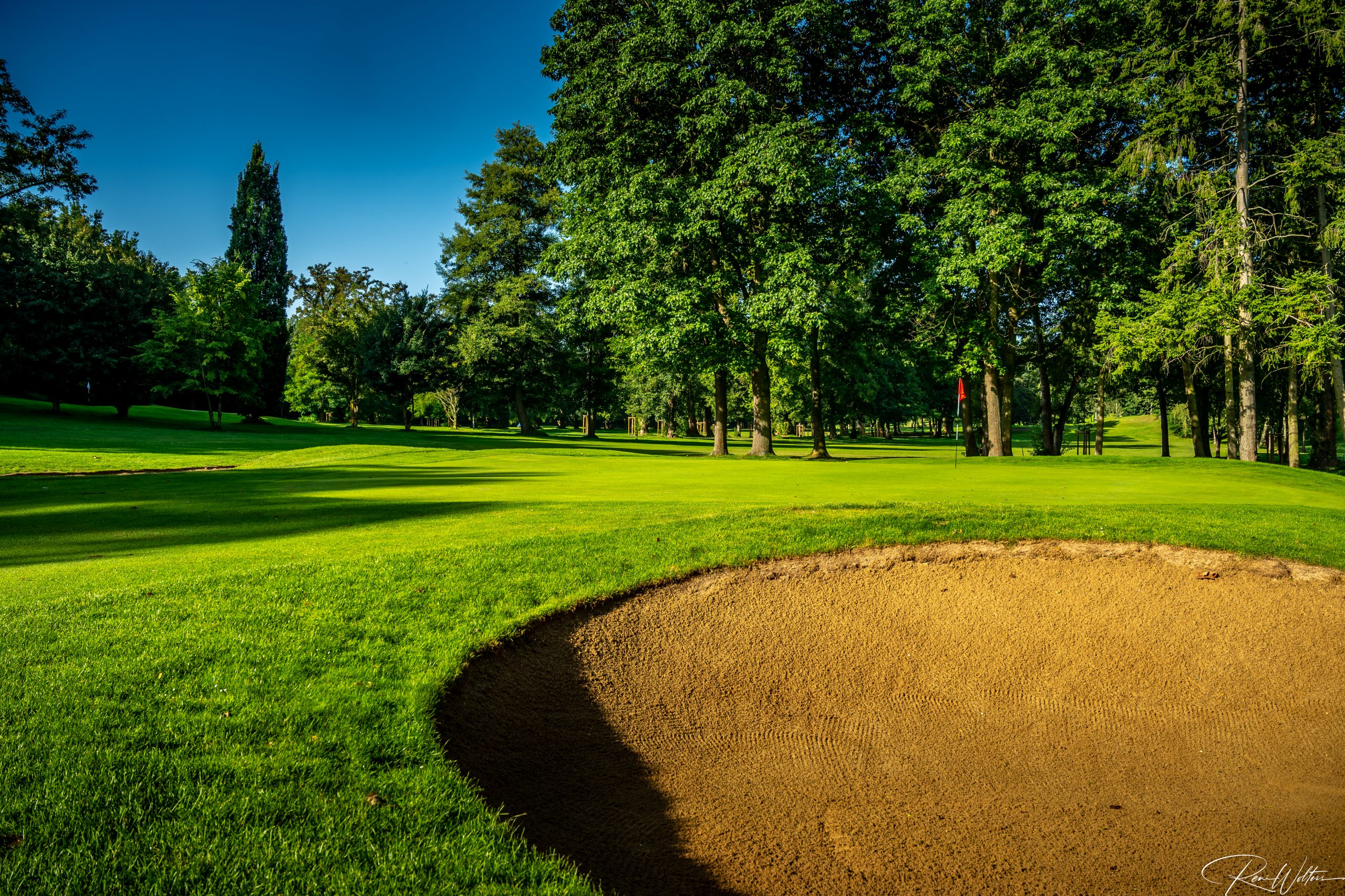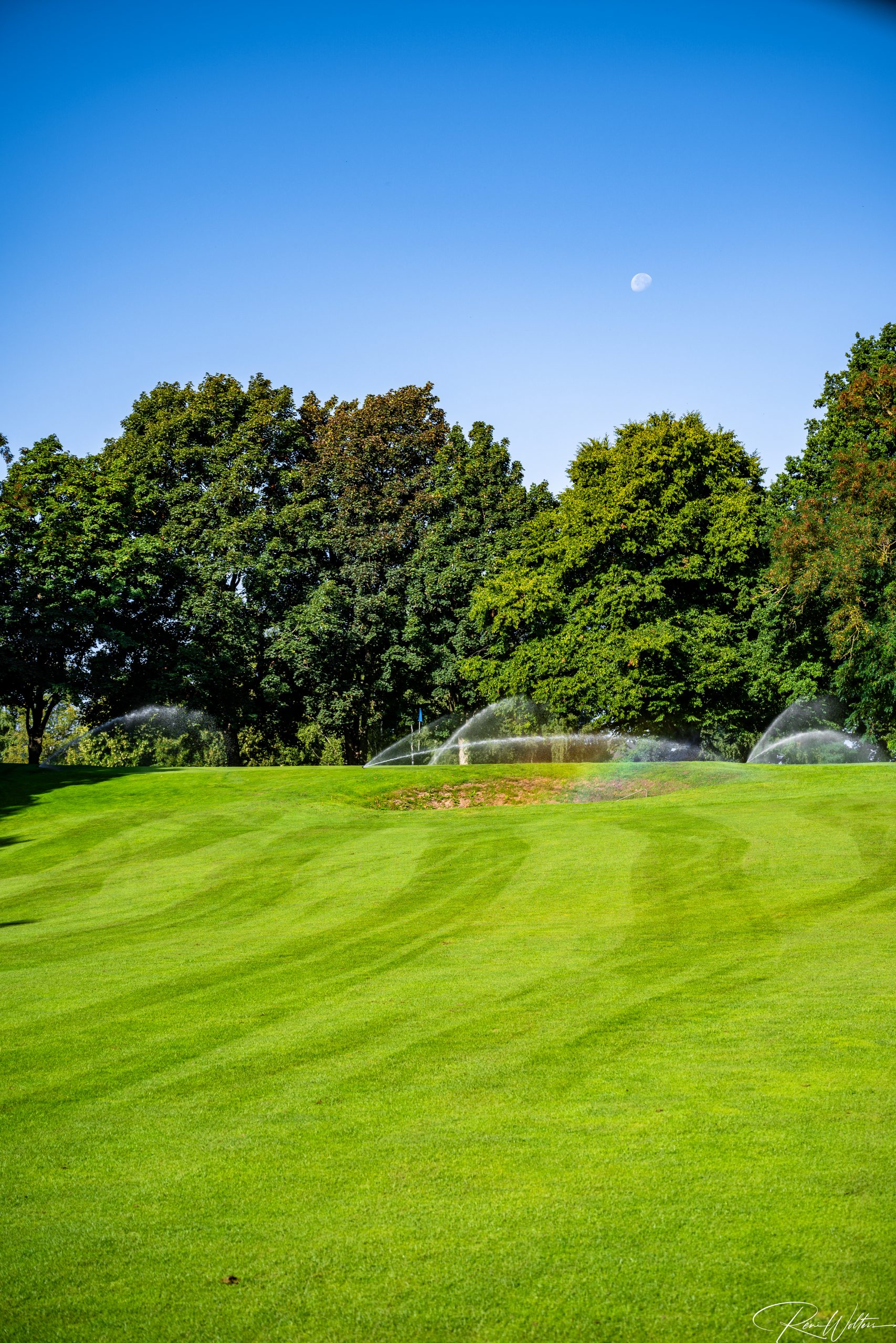 Zu dieser frühen Stunde gehört der Platz fast nur denen, die bewusst hinschauen. Neben ein paar Greenkeepern, die sehr verwundert waren uns zu sehen, waren nur noch ein paar Vögel so früh auf den Beinen. Keine Geräusche, kein Hecktik, kein Spiel. Die Fahnen standen regungslos, die Grüns wirkten wie gemalt. In diesem Licht verliert der Golfplatz seine Funktion und wird zur Bühne: Linien, Farben, Kontraste – Natur in ihrer ruhigsten Form.