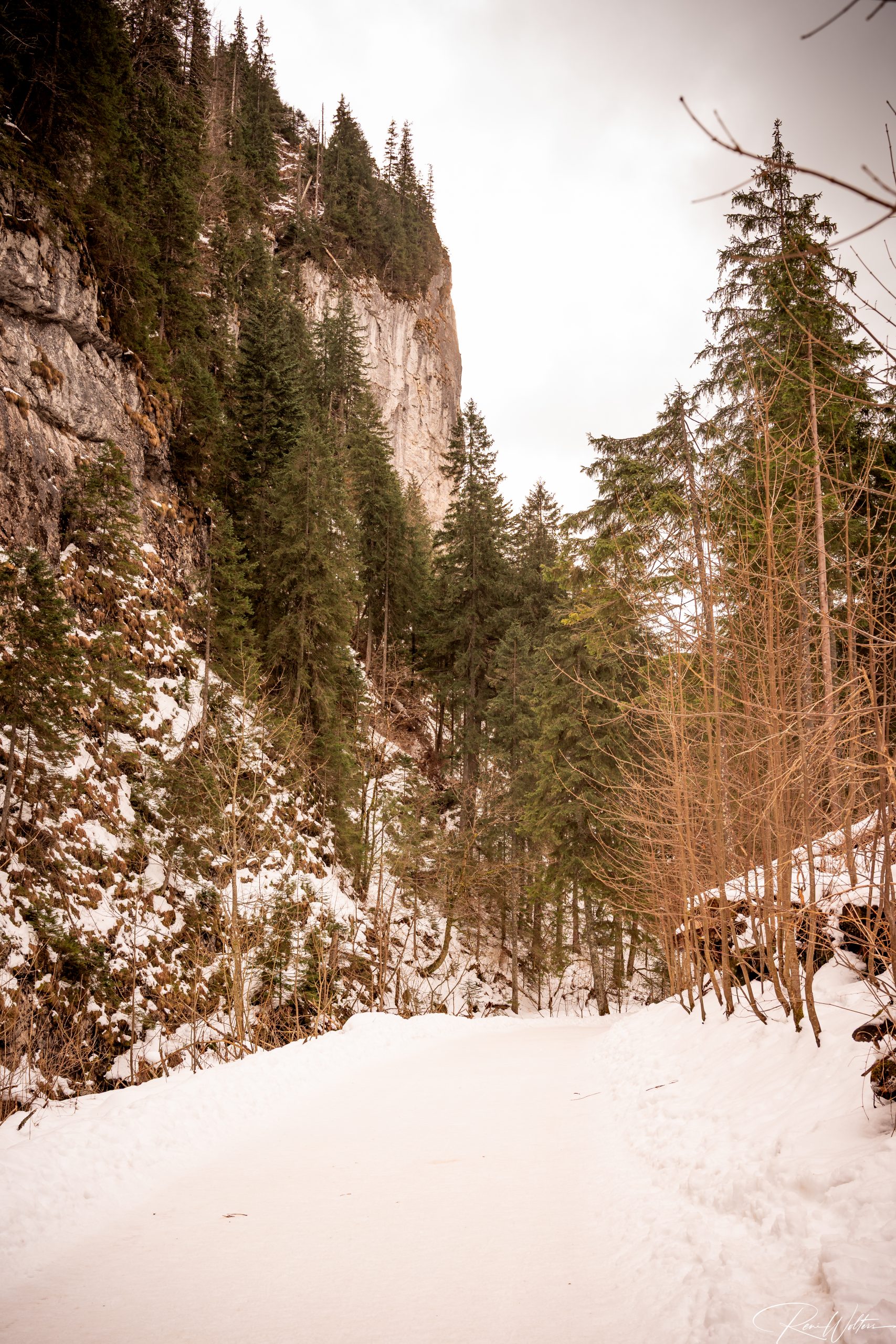 Unsere Wanderung führte uns entlang verschneiter Pfade, vorbei an gefrorenen Bächen und durch stille Waldabschnitte.